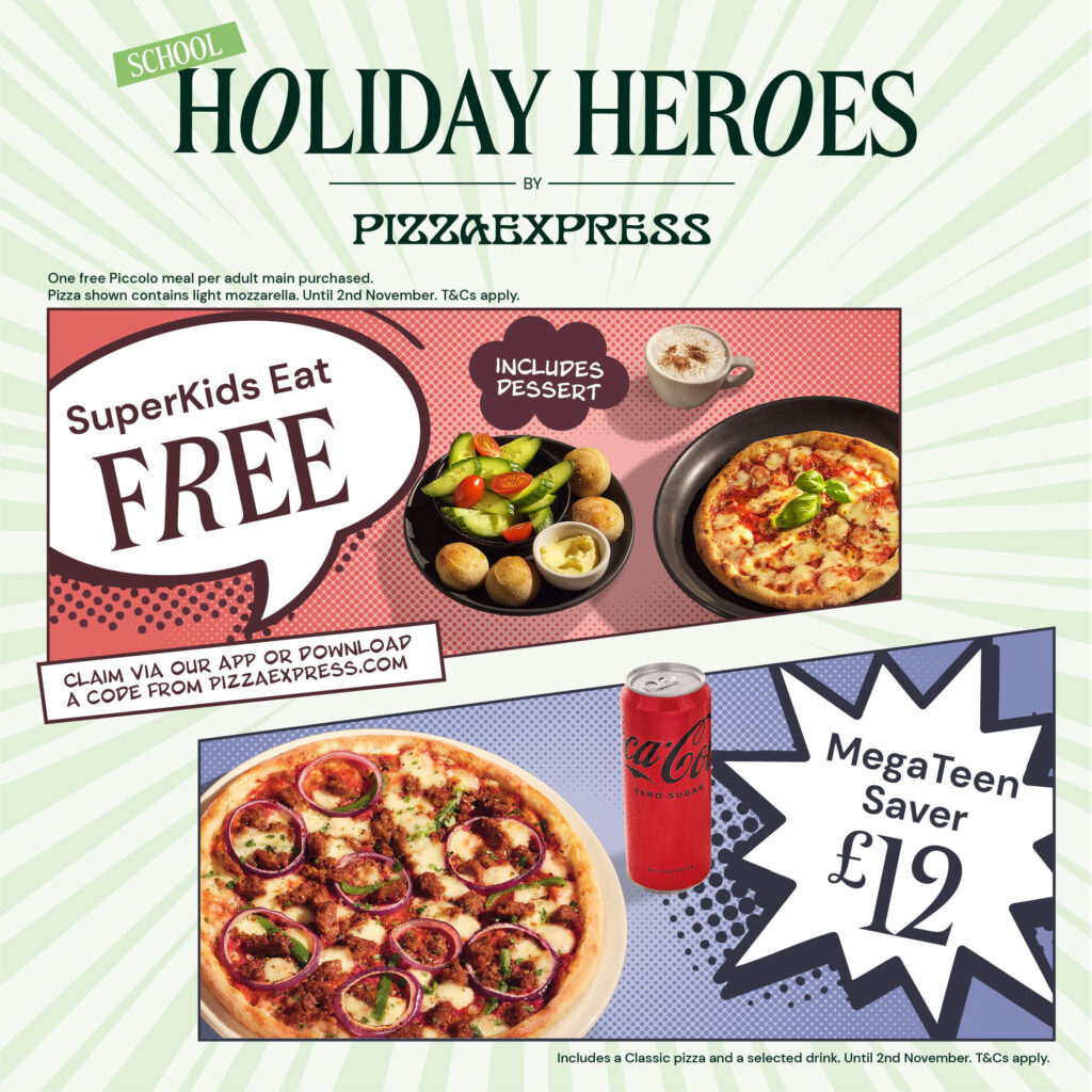 The School Holiday Heroes have arrived at PizzaExpress in the nick of time. Eat in at one of our pizzerias until 2nd November and they’ll make the price of a Piccolo meal disappear, so SuperKids under 12 eat free.