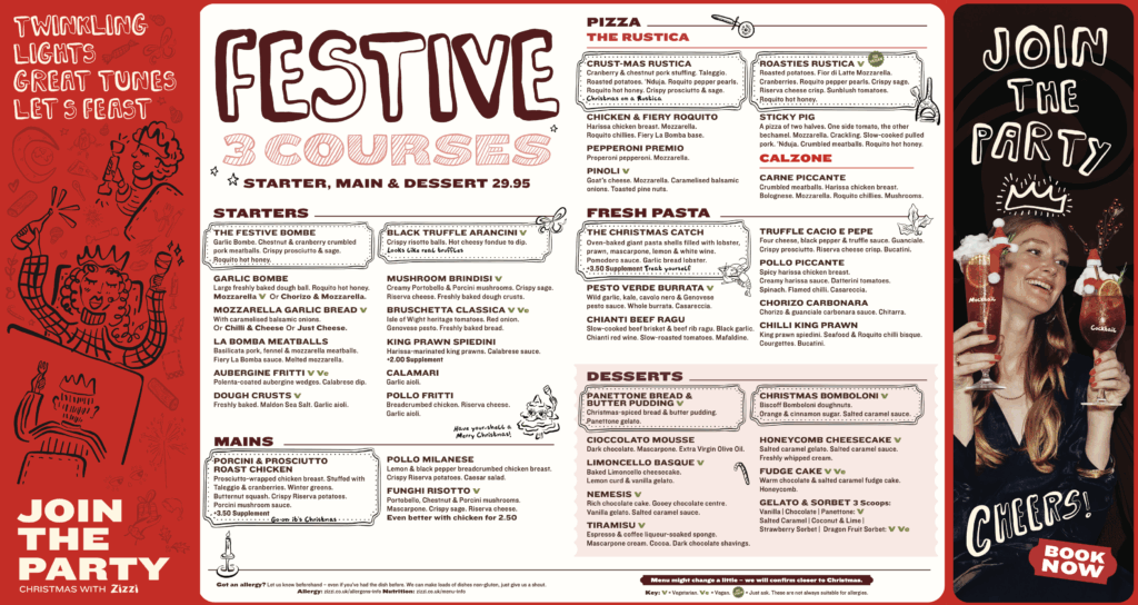 Zizzi have an extensive vegetarian, vegan and non-gluten menu offering as well as their Bambini kids menu.